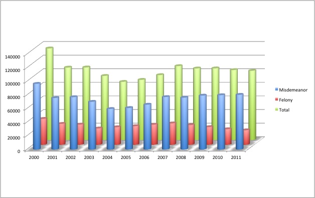 - Misdemeanor Drug crimes are up 31% (80,462 in 2011).